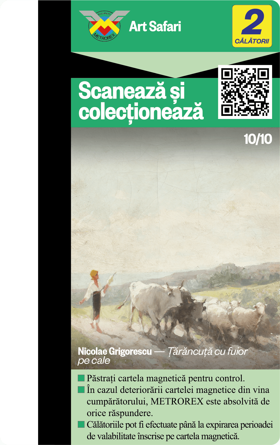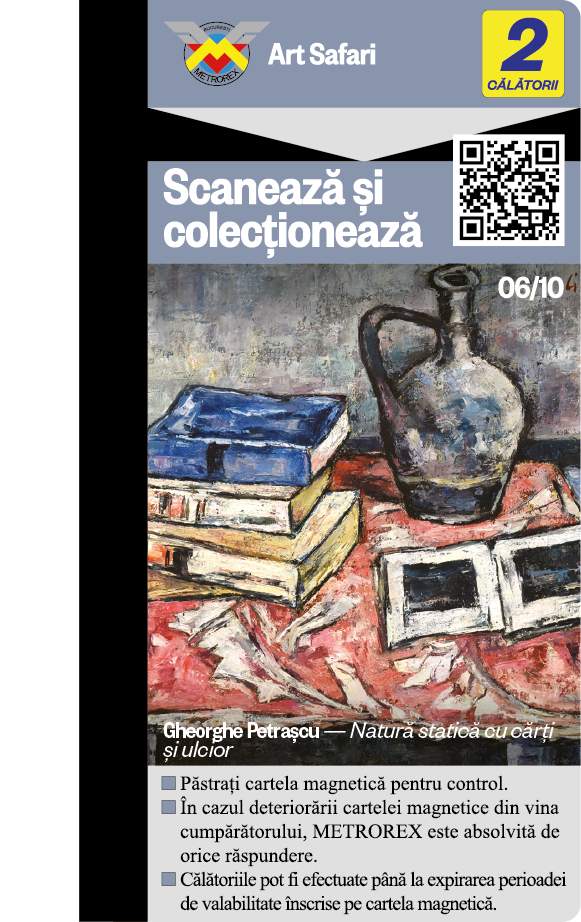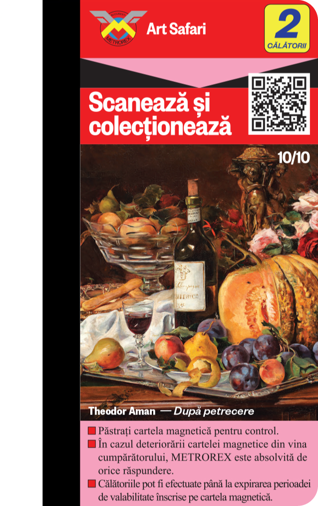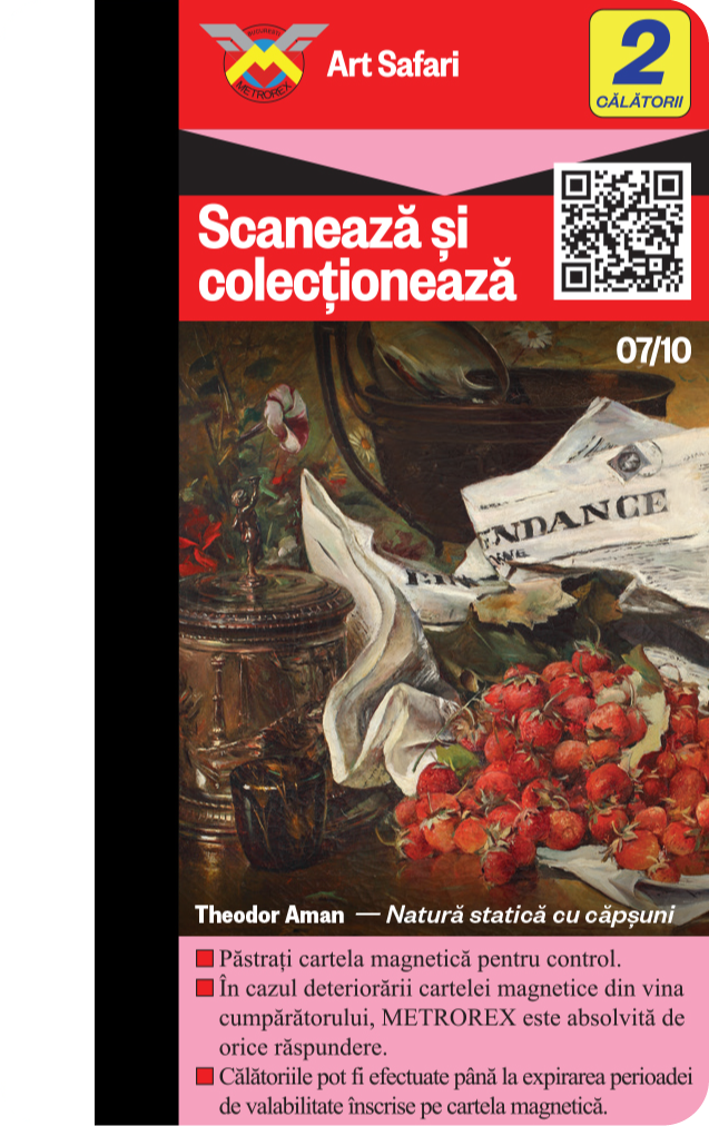 Cele 6 serii de Cartele de colecție, plus seria specială București au fost epuizate. Descoperă și „vânează” acum noua colecție de Cartele cu cele 10 lucrări ale lui Theodor Aman + cartela „Țărăncuță cu basma albă” și poartă-le cu tine în călătoria cu metroul!