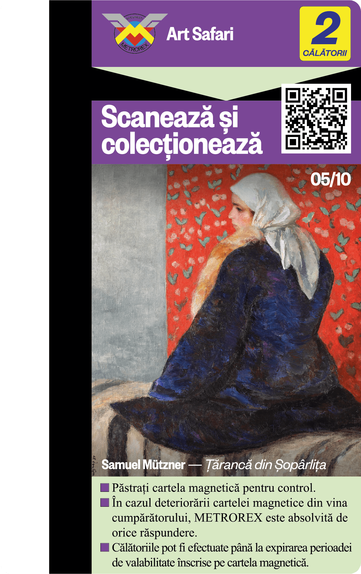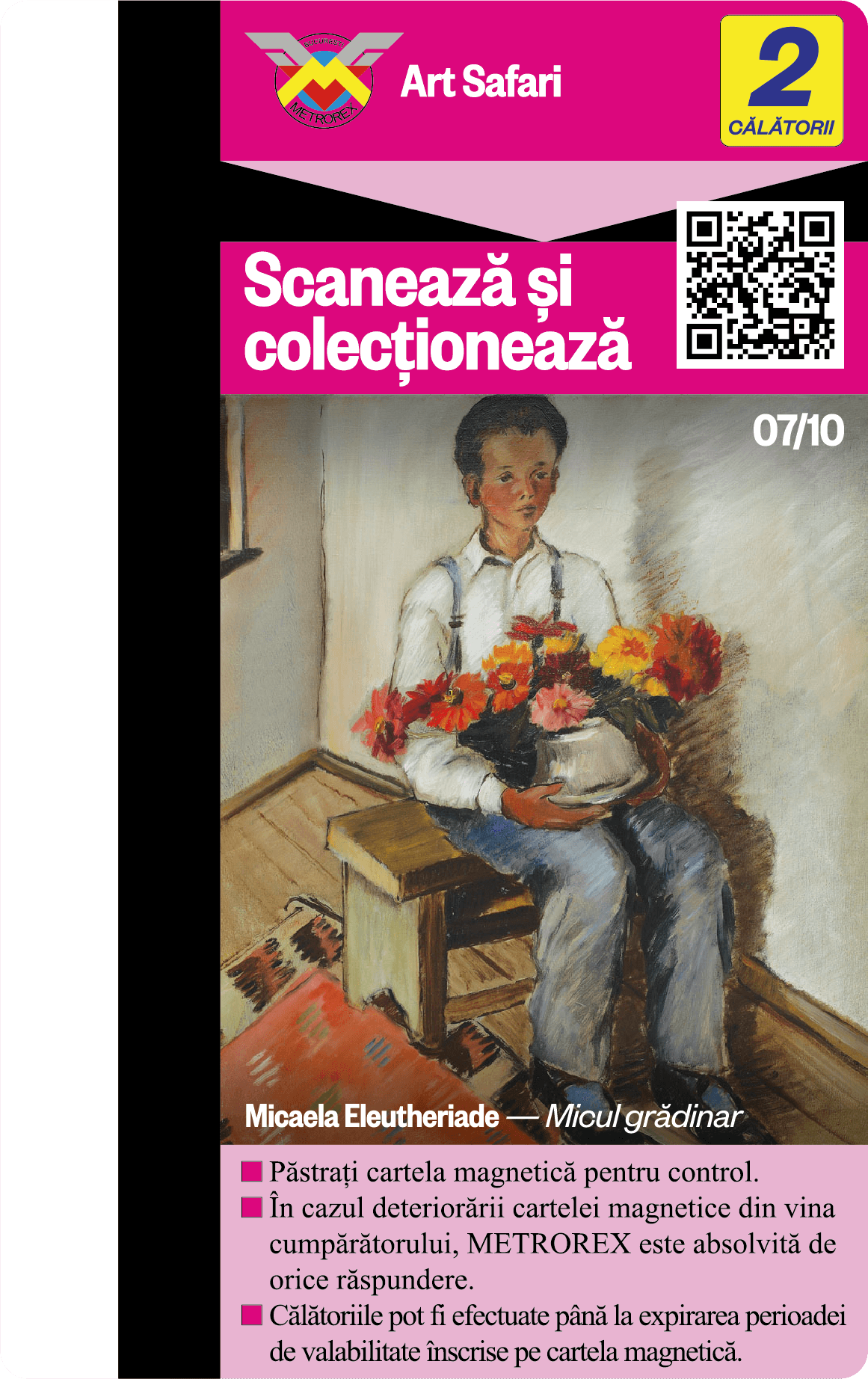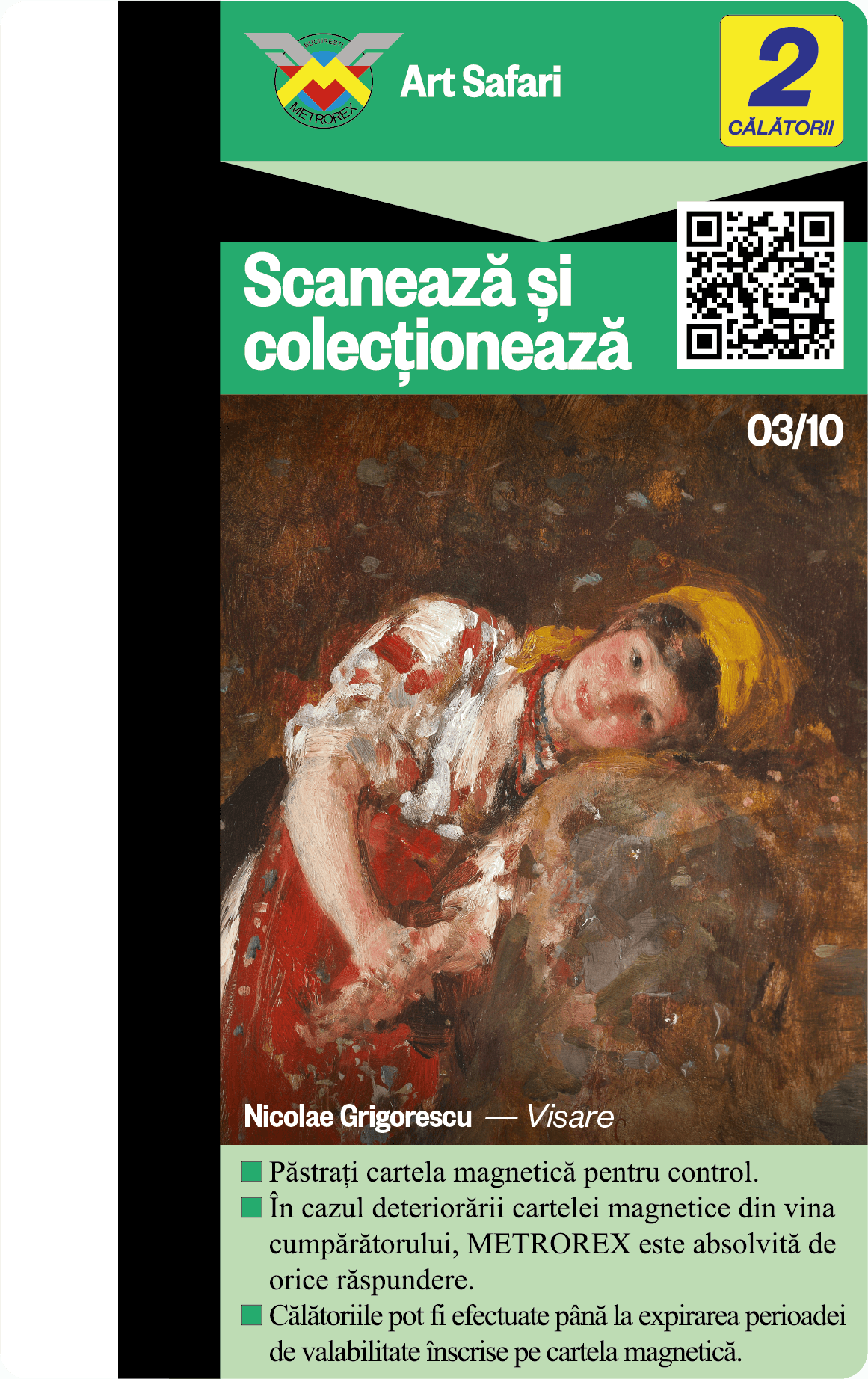 Cele 6 serii de Cartele de colecție, plus seria specială București au fost epuizate. Descoperă și „vânează” acum noua colecție de Cartele cu cele 10 lucrări ale lui Theodor Aman + cartela „Țărăncuță cu basma albă” și poartă-le cu tine în călătoria cu metroul!