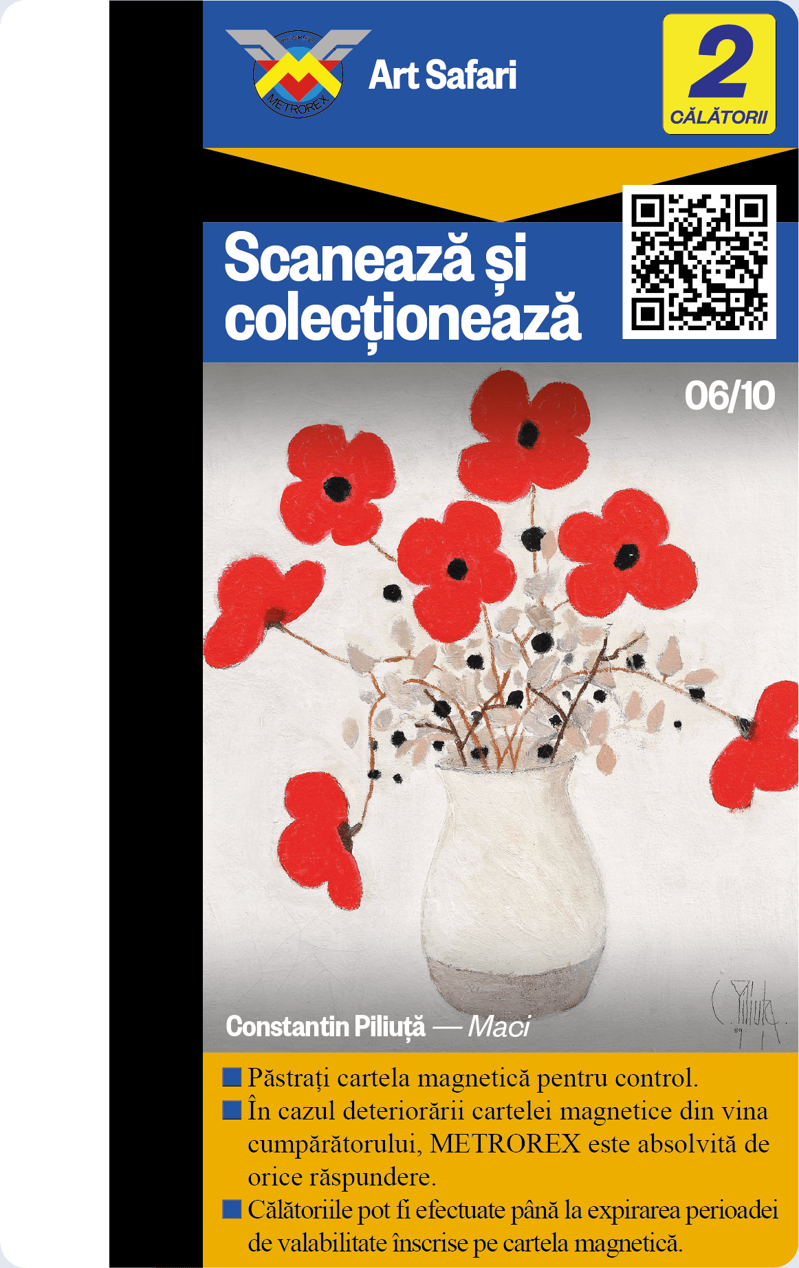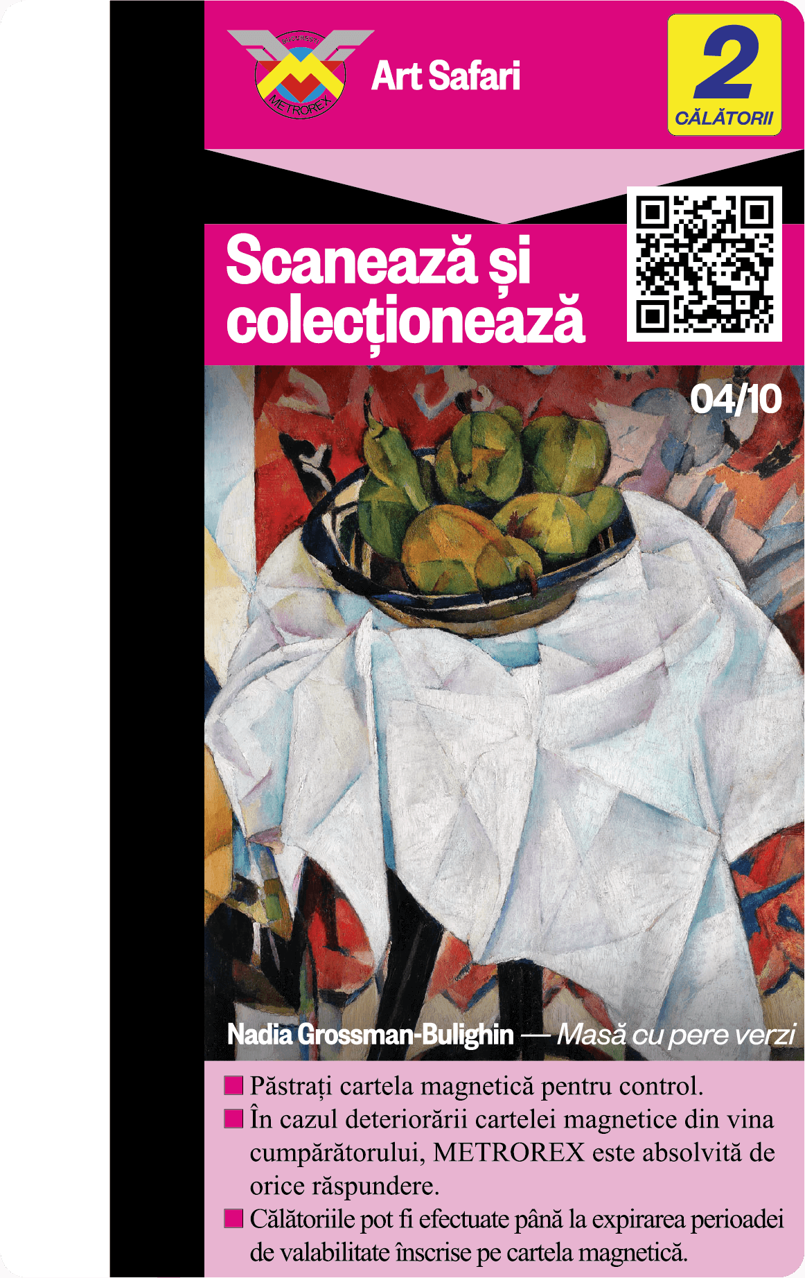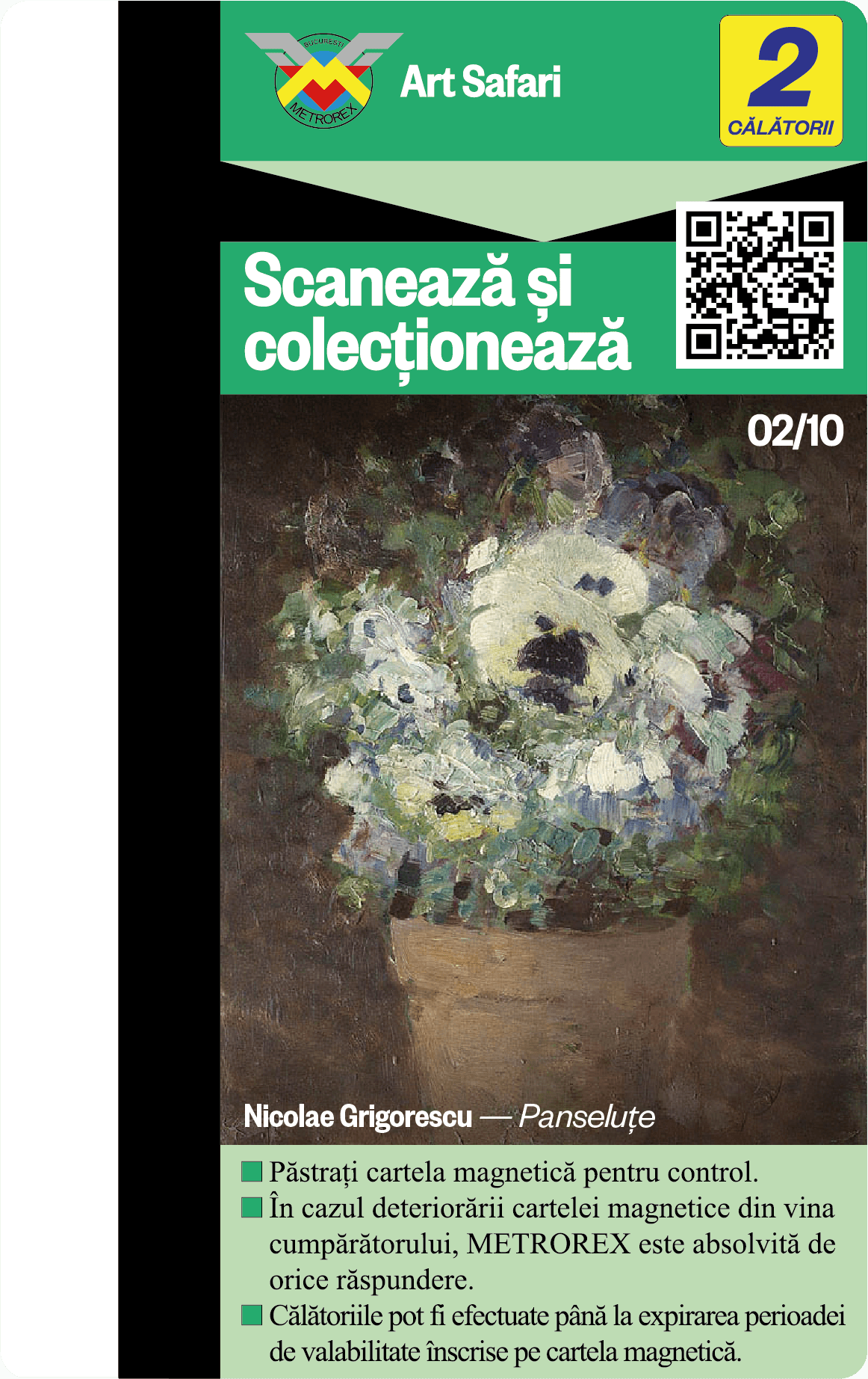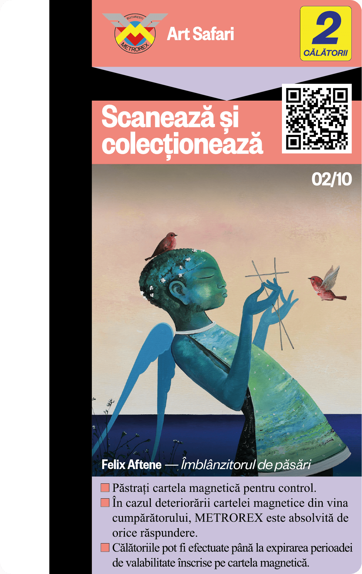 Fiecare cartelă de 2 călătorii colecționată nu este doar un pas înspre un viitor mai verde, ci și un pas mai aproape de călătoria ta în universul expozițiilor Art Safari.