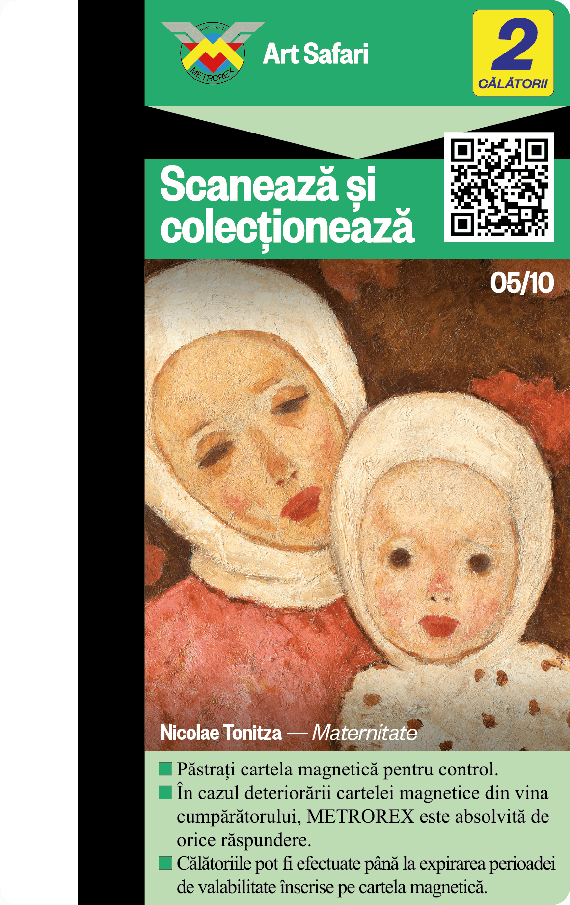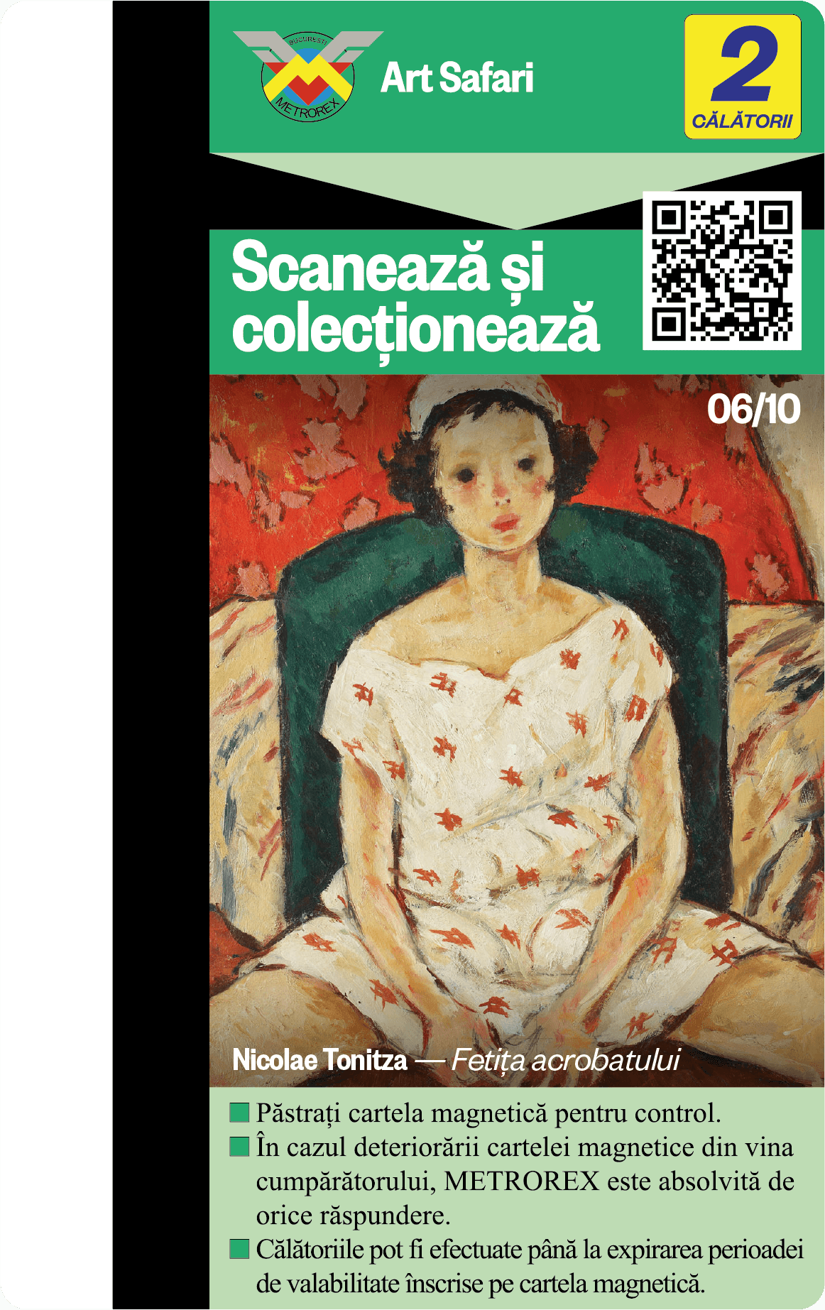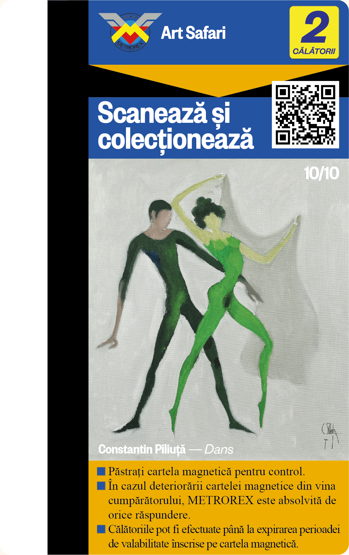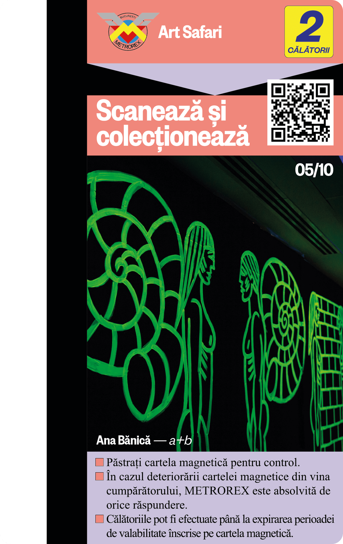 Te provocăm să colecționezi toate cele 10 cartele de metrou, contribuind astfel nu doar la colecția ta, ci și la asigurarea unui mediu urban mai puțin poluat și a unui oraș mai plăcut de tranzitat.