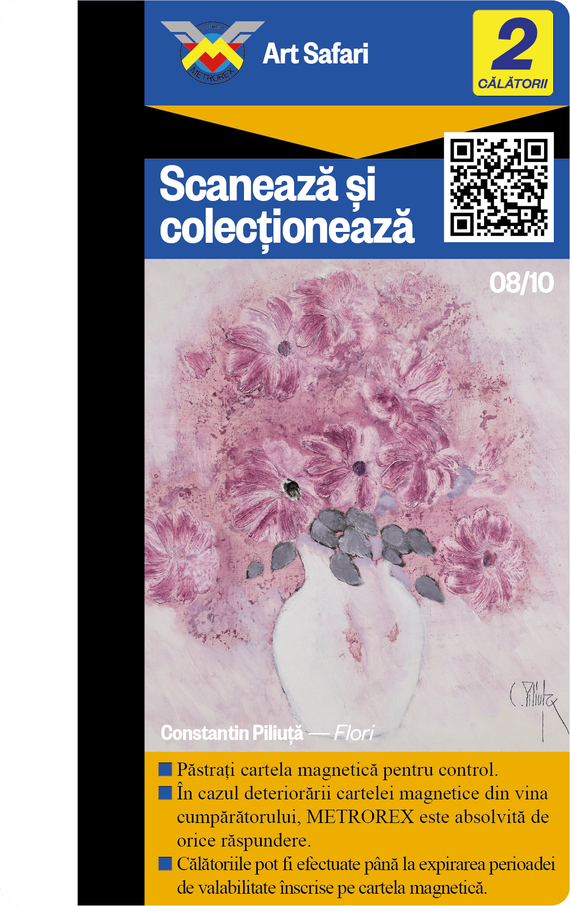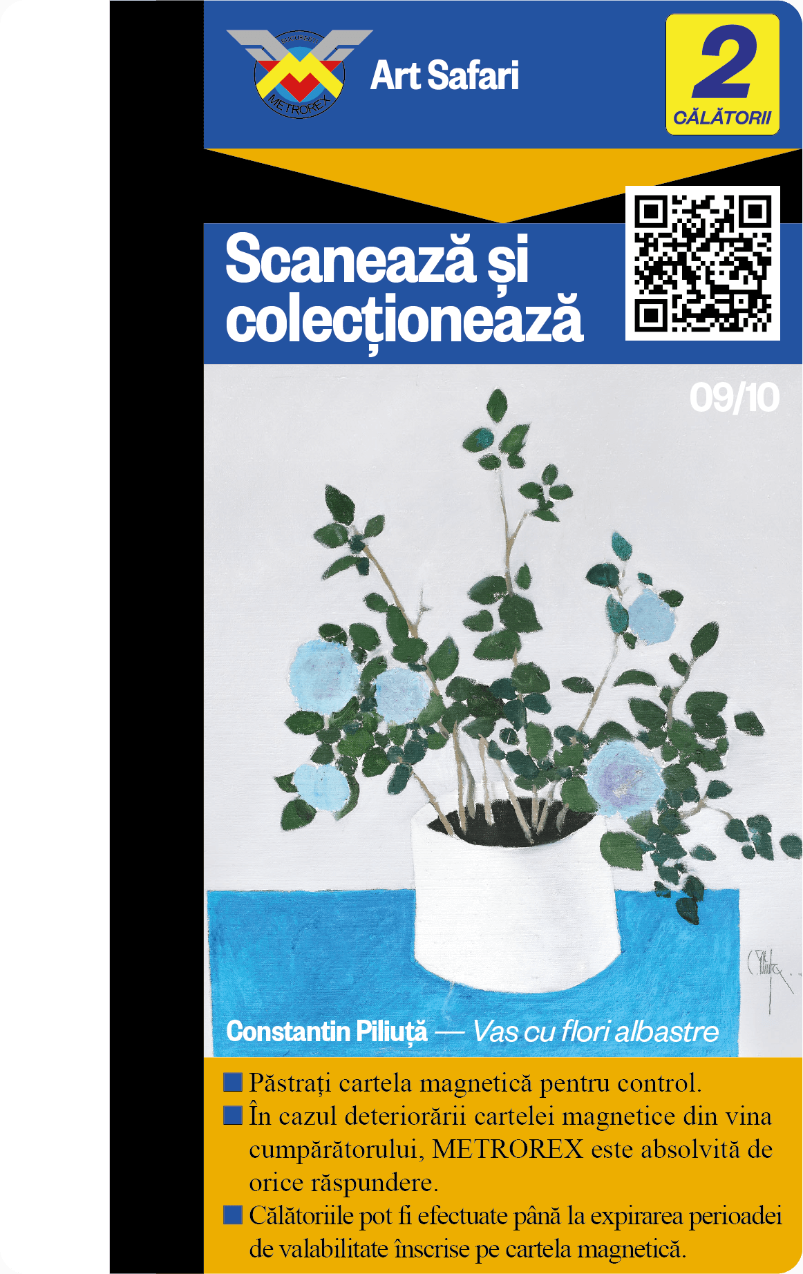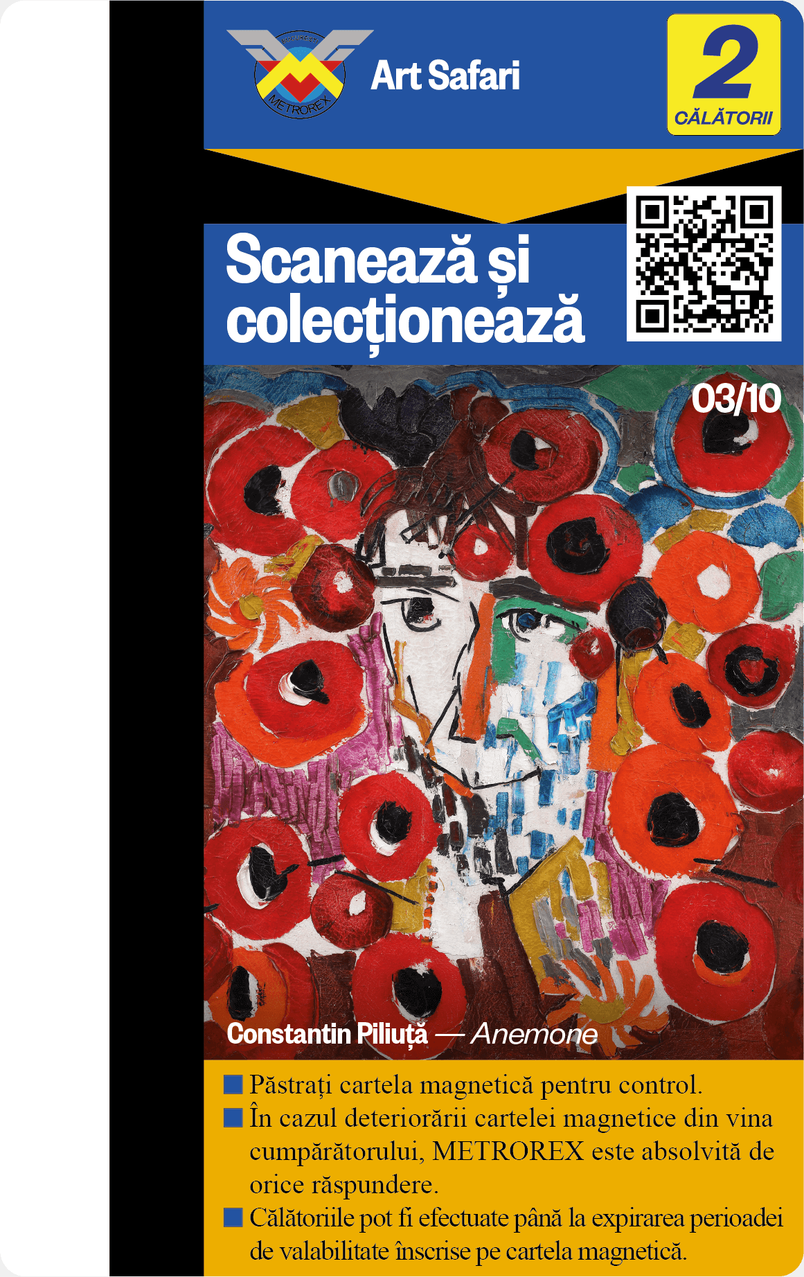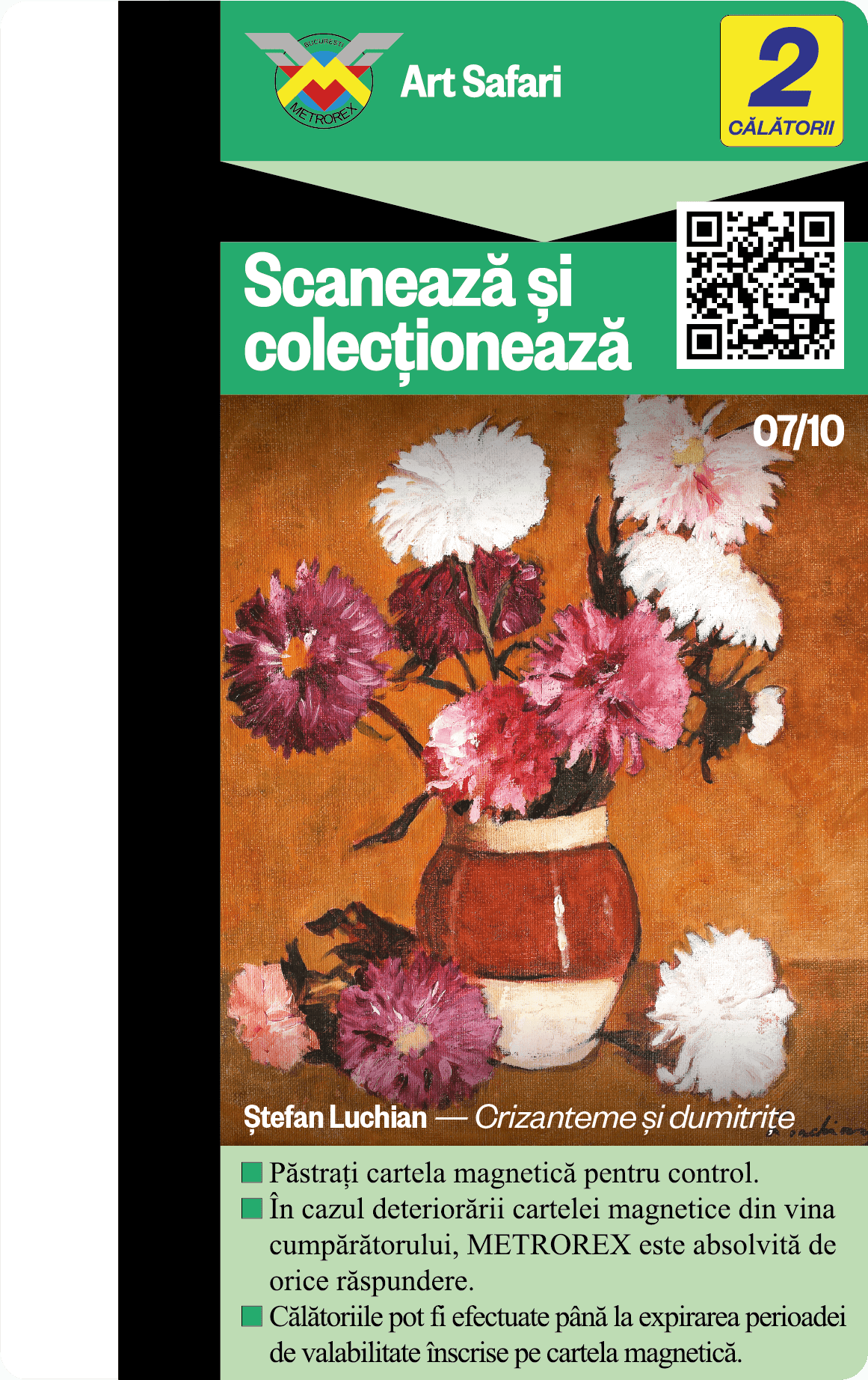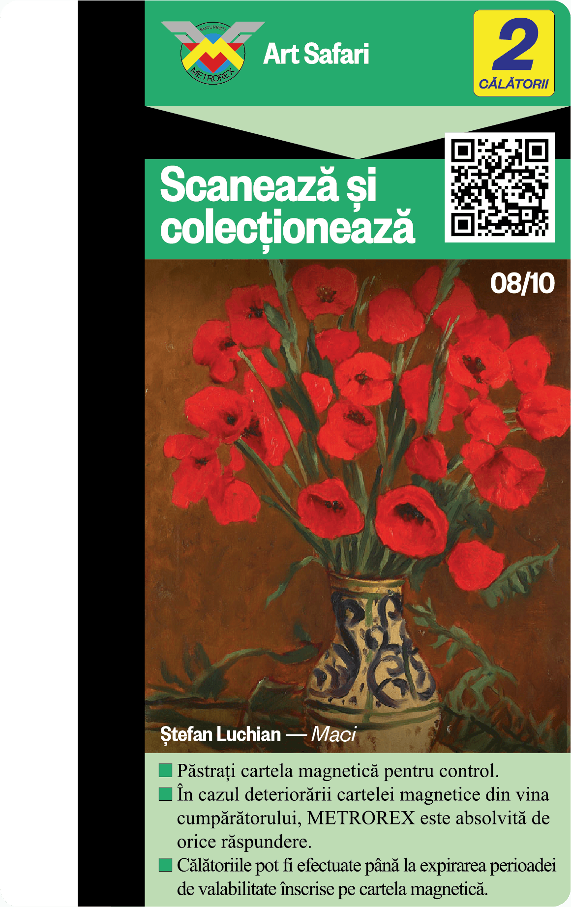 Te provocăm să colecționezi toate cele 10 cartele de metrou, contribuind astfel nu doar la colecția ta, ci și la asigurarea unui mediu urban mai puțin poluat și a unui oraș mai plăcut de tranzitat.